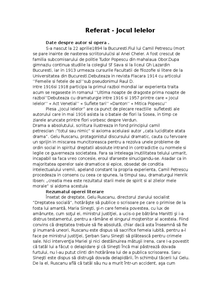 Personaj romantic prin aspiaţiile sale nemărginite, gelu ruscanu. For faster navigation, this iframe is preloading the wikiwand page for jocul ielelor. Petrescu a trait intre anii si este o personalitate literara, astfel se poate vorbii despre el ca:
