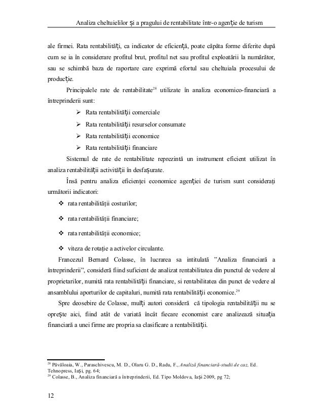 vizitati articolul complet aici : https://www.ceccarbusinessmagazine.ro/analiza-rentabilitatii-si-riscul-intreprinderii-a5226/ Se determina ca raport intre profitul net si capitalul ptoptiu. Rata rentabilitatii financiare indica si remunerarea potentiala a actionarilor. Irr ) este o rata de actualizare financiara la care valoarea fluxului de numerar actualizat este egala cu val.