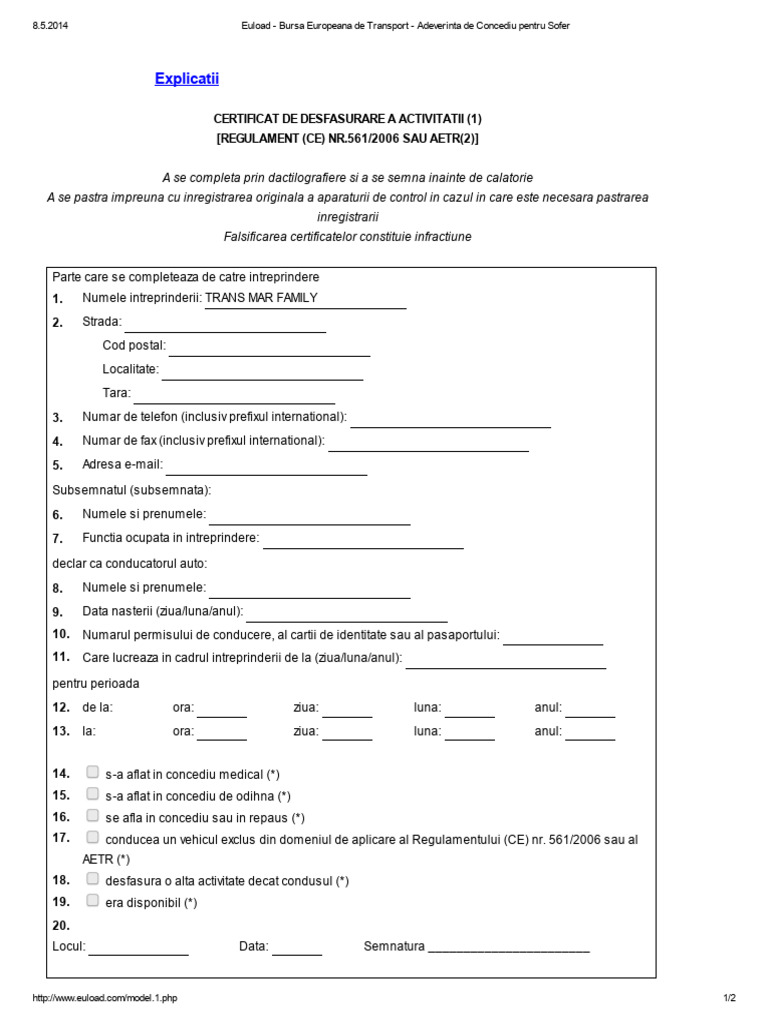 Foaie De Concediu Transport